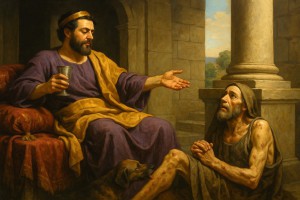 Bogacz i Łazarz / Wygenerowane przez: SoraChatGPT