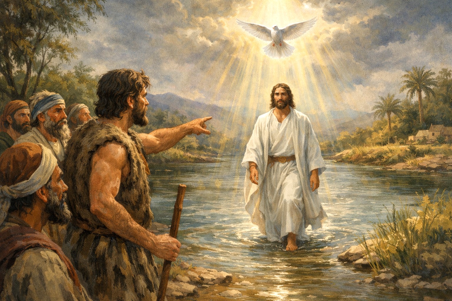 Jan zobaczył podchodzącego ku niemu Jezusa i rzekł: «Oto Baranek Boży, który gładzi grzech świata. To jest Ten, o którym powiedziałem: „Po mnie przyjdzie Mąż, który mnie przewyższył godnością, gdyż był wcześniej ode mnie”. Ja Go przedtem nie znałem, ale przyszedłem chrzcić wodą w tym celu, aby On się objawił Izraelowi».