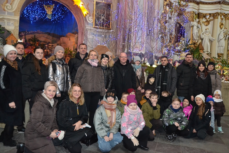 W tym dniu wraz z uczestnikami spotkań i ich rodzicami udaliśmy najpierw do Warty. Tu w kościele o.o. Bernardynów znajduje się ruchoma szopka. Wspomnę, że od 2022 roku dzieci ze Szkoły św. Rocha wraz z rodzicami przygotowują szopkę w Diecezjalnym Sanktuarium św. Rocha. Ta w naszym sanktuarium jest niewielka, ale dzieci i rodzice wkładają w jej przygotowanie całe swoje serce. Ta w Warcie jest największą w woj. łódzkim i jedną z największych w naszym kraju.